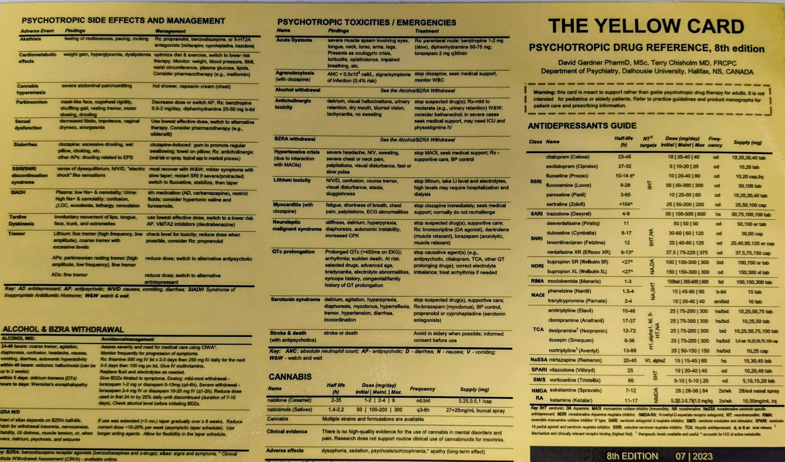 Dalhousie Department of Psychiatry newest edition of their Psychotropic Drug Reference, The Yellow Card.